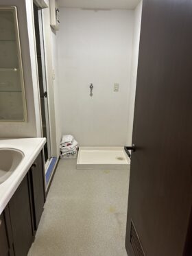 脱衣所にあった洗面化粧台はご使用になられていないということで撤去し、収納スペースとして使えるようにしました。