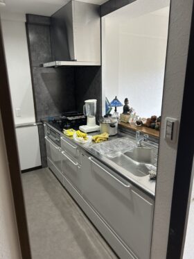 家に入るとすぐお風呂がありましたが、その部分に流し台を設置して、台所を広く使えるようにしました。